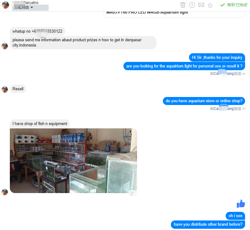 自从决定投入Facebook社媒营销,客户一直很关心平台的动态,主页只要有询盘信息进来,客户便立刻安排专人跟进,第一时间回复买家的信息,对于已读不回的买家,客户的公司内部也有相应的跟进机制,二次甚至多次的跟进,在一定程度上减少了买家的流失率。